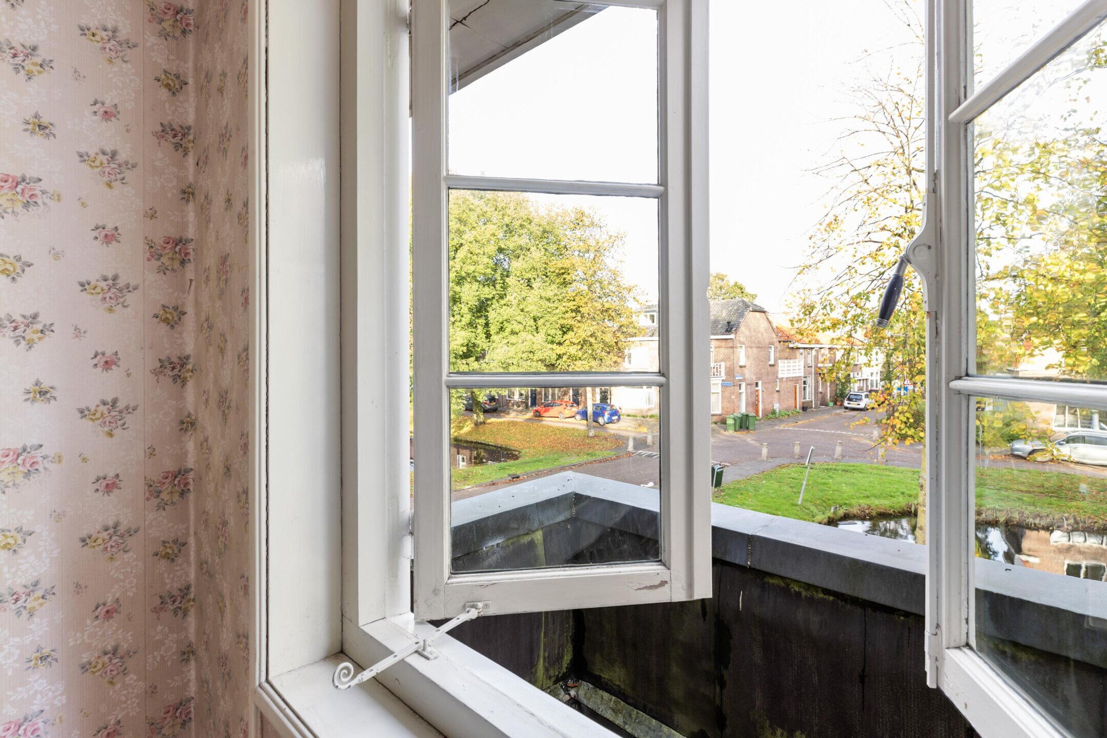 Aan de voorzijde bevindt zich slaapkamer (1) met vaste kast en vrij zicht over het water en groen van de singel.