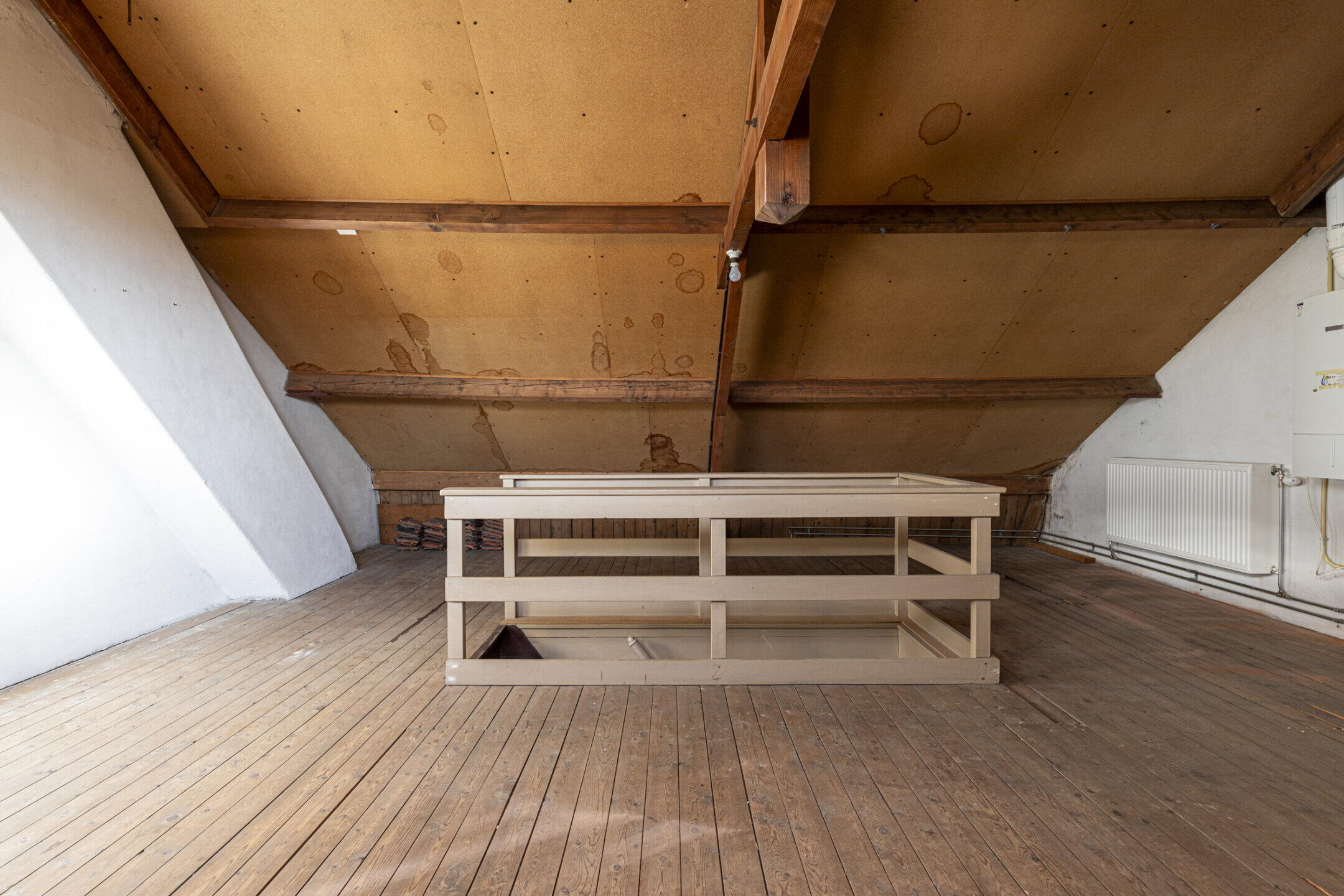Grote open nader af te werken en te isoleren zolderkamer. Er is thans een kleine dakkapel aanwezig. Deze verdieping biedt de ruimte om meerdere slaapkamers te realiseren.